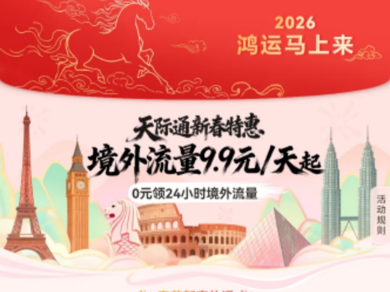 2026鸿运马上来!华为天际通境外流量新春特惠9.9元/天起