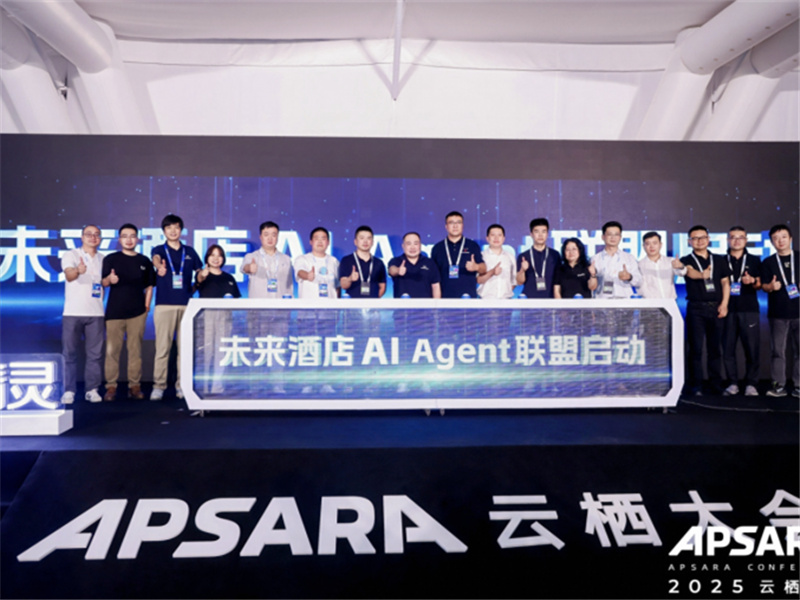 杭州云栖小镇国际会展中心,天猫精灵未来酒店在2025云栖大会上重磅发布未来酒店4.0,包括AI驱动的桌面营销系统、颠覆传统话机的音箱新通话、多智能体协作的超级AI助理团队等三大核心解决方案,助力酒店行...