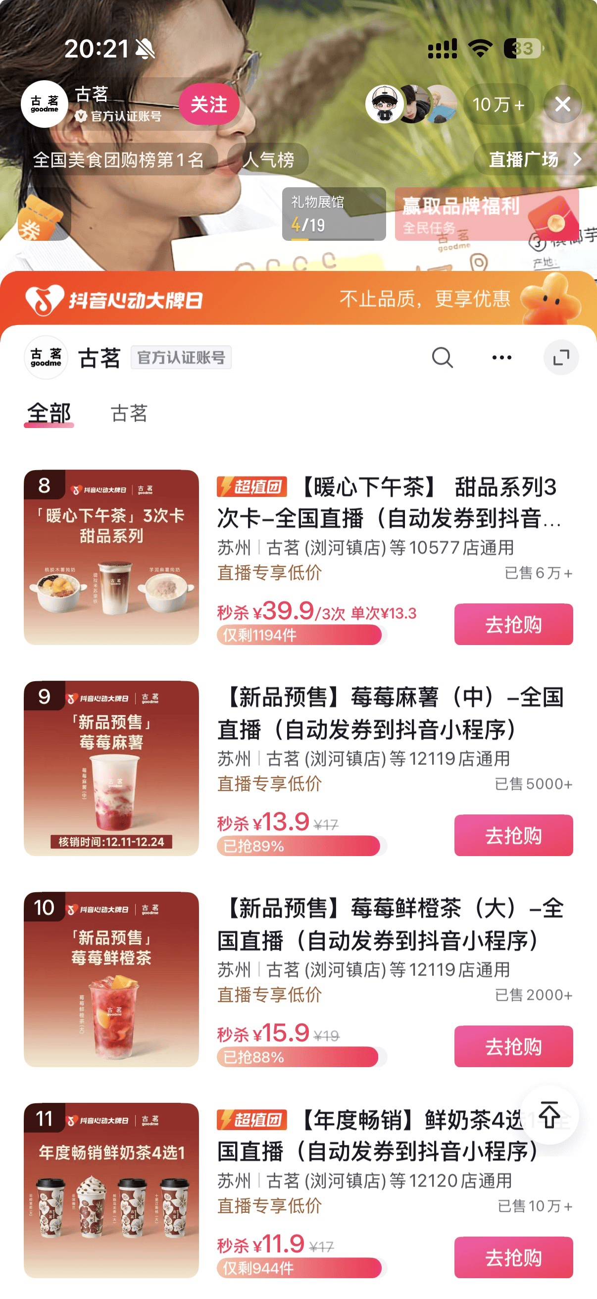 古茗x「抖音心动大牌日」:承包“茗粉”冬日囤奶茶快乐