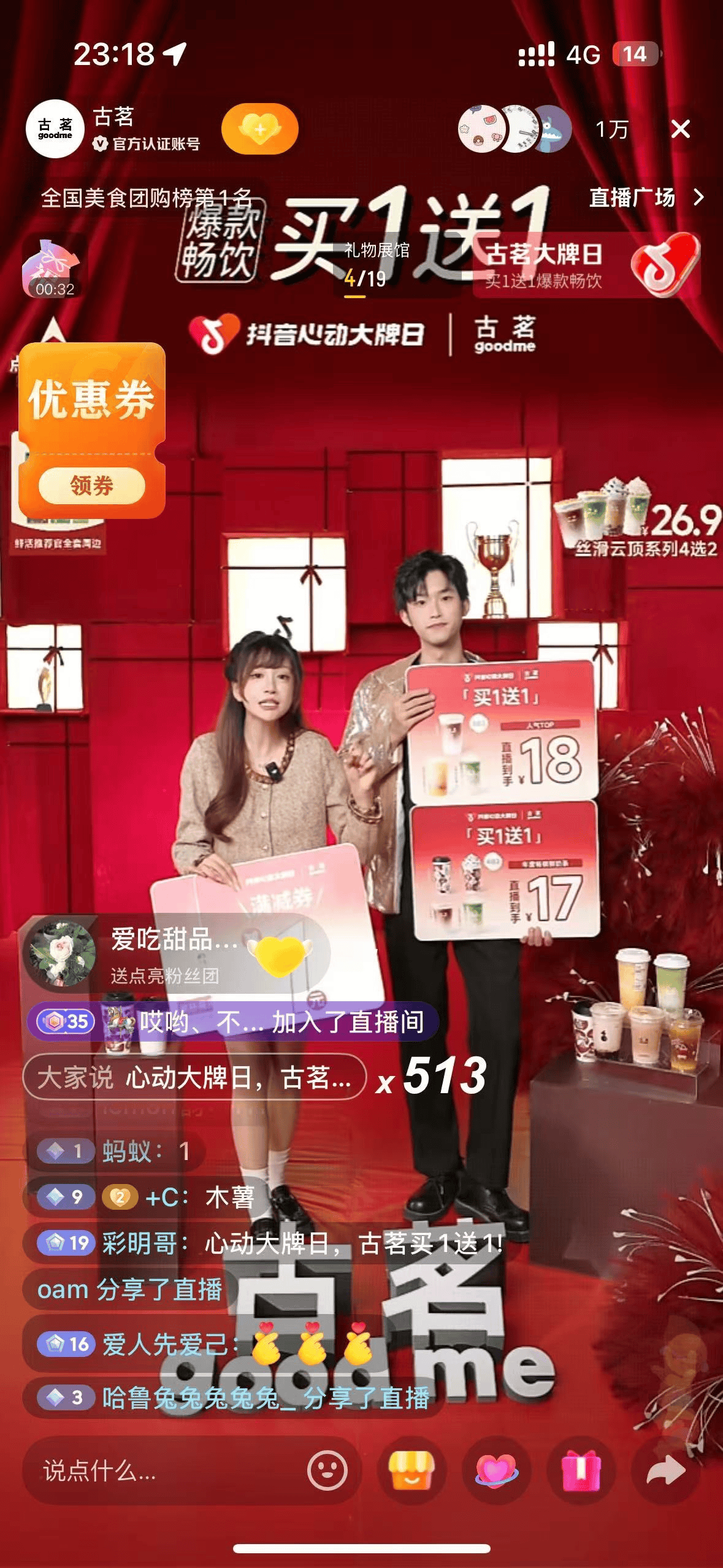 要将一场直播转化为真正的消费狂欢,仅靠单品折扣远远不够。古茗深谙此道,为此构建了一个层次丰富、吸引力持久的“超值福利矩阵”。直播间内,7款“买1送1”人气饮品,爆款到手价低至17元。在此基础上,品牌层层加码:推出可多次核销的“奶咖自由7次卡”,提供可叠加的平台满减券,并设置“0元抢福袋”环节激发瞬时互动。同时,年度畅销券包满足灵活需求,冬季草莓新品更享有抖音独家预售权。这套“爆款直降、新品独家、福利叠加”的立体体系,确保了从新客到熟客、从尝鲜到囤货的全类型需求都能被牢牢锁定,为直播间注入了持续高涨的人气与停留时长。