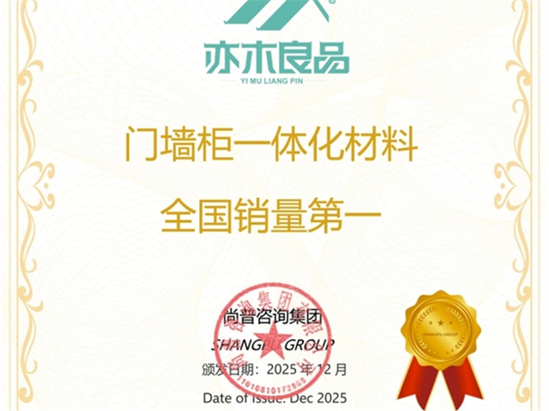 捷报再传!2025年12月,国内权威咨询机构尚普咨询集团,正式向亦木良品颁发市场地位声明书,授予品牌「门墙柜一体化材料全国销量第一」的重磅声明!