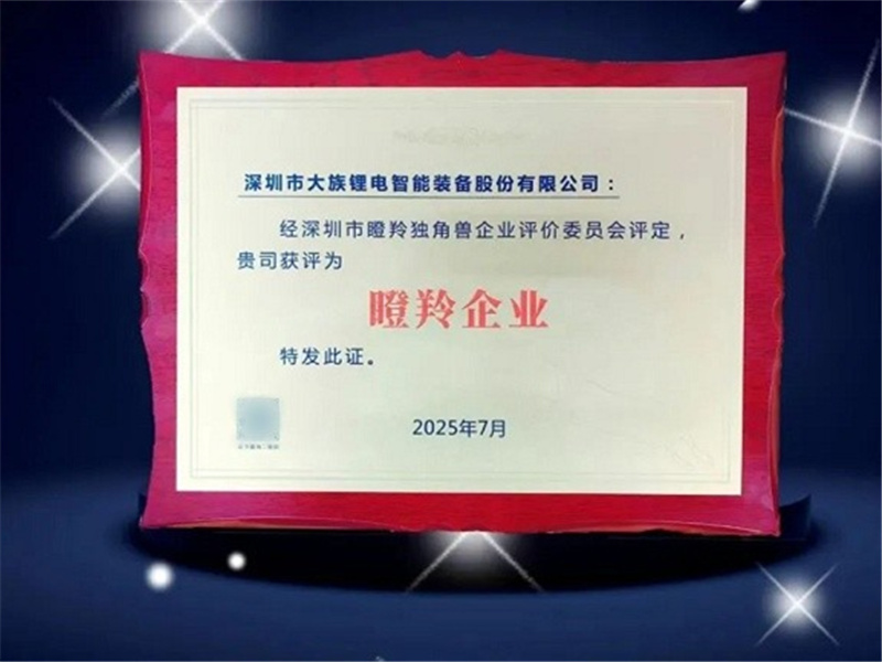 大族锂电获评深圳市“瞪羚企业”称号