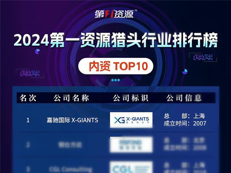 行业领先!嘉驰国际第三次获评内资猎头排行榜TOP1